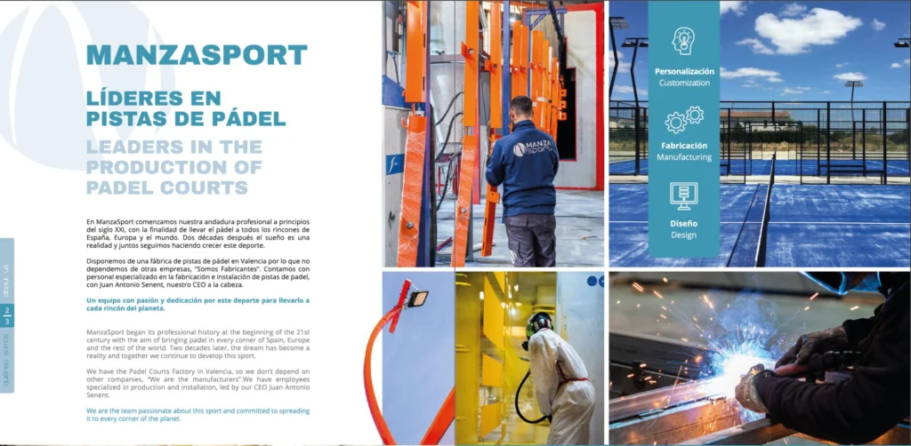 Perustuu osoitteeseen Valenssi , ManzaUrheilu on espanjalainen yritys, joka on erikoistunut suunnittelu , valhe ja padelkentän asennus , joissa on enemmän kuin 20 vuoden kokemus alalla.